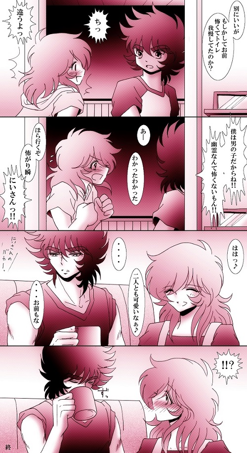 ちびいっきしゅん♪ ご来訪・拍手ありがとうございます。Topページにてご案内しておりますが、Gallery004にショート漫画をアップしました。色付けしてないのでめっちゃ白いですが、お付き合い頂けたら幸いです(*^^*)一旦たたみます。 というわけで久しぶりのちび一輝瞬(*^ω^*)♪いつもお昼寝する時は兄さんに子守歌を歌ってもらうから、今日は僕が兄さんに子守歌歌ってあげるんだっ!っていう兄さんの真似っ子したい瞬ちゃん♪でもちっちゃいから子守歌歌いながら自分も寝ちゃったりしたら激かわですよね( *´艸`)♡最後は兄さんがいつもの兄さんらしく瞬ちゃんを横に寝かせてお布団かけて二人でお昼寝♪何気ない日常の一コマだけど、こんな感じのちびいっきしゅんとかいいなと思います♪ちびっこは癒される・・・♪おっきぃ兄さんの寝顔は男の色気を感じて大好きですが、ちびっこ兄さんの無防備な寝顔もまた可愛くて大好きです(///ω///)♪瞬ちゃんはおっきくてもちっちゃくても寝顔は天使!!( ・`ω・´)b☆キリッちっちゃくてもおっきくても二人で一緒に眠る時はお互い心穏やかに安眠するんだろうなぁって思います(*^ω^*)♪久しぶりのちびいっきしゅん描けて楽しかったです♪そして久しぶりに見直したいっきしゅんとちびいっきしゅんをこちらにアップ♪ しばらく描いてないですが、この後のお話もいくつか描きたいのがあるんですよ。いろいろ間に合ってなくて描けてないけど・・・(:;)今描いてるお話が落ち着いたらこちらも描き進めたいなと思います(*^^*)♪だいぶ時間はかかりそうですが、その際はまたお付き合いくださいませ♪最後に。おかげさまで当サイト、もうすぐ4周年を迎えます(*^^*)今年もTopページだけは変更したいなと思っていて今日から取り掛かる予定です♪安定なる我が家の一輝瞬ですが、新しい挿絵で皆さまをお迎えできればと思うのでがんばります(≧ω≦)ノ☆ [7回]PR