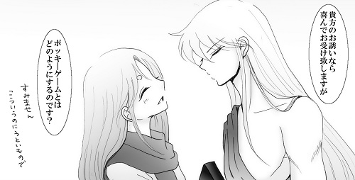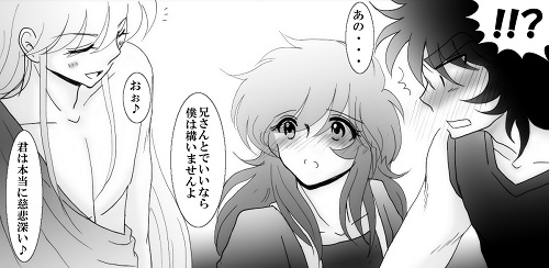 ポッキーの日一輝瞬☆ ご来訪・拍手ありがとうございます。Topページにて案内しておりますが、Gallery004に先日のキリ番でお贈りさせて頂きました漫画をアップしました(*^^*)お付き合い頂けたら幸いです。一旦たたみます。 時期はずれなポッキーの日一輝瞬だったんですけども・・・(≧▽≦;)かっこいい一輝兄さんが大好きでいつもかっこよくて優しい兄さんを追い求めて描いてばかりなんですけど、時々無性に照れ照れな兄さんがほしくなるんですよね。普段渋くてカッコイイ兄さんが照れる瞬間が好きなんですよ・・・////そして。 ポッキーゲームとか、世間の事を知らないシャカと(色んな知識を持っているのにそういうのには疎いシャカとムウ様っていうのも可愛くてツボなんですが) 困った人を見捨てておけない純粋で可愛い瞬ちゃん♪「知っていて教えないのはよくないよ」ってポッキーゲームを知らなくて教えてほしいというシャカに律儀に真面目に答えようとする瞬ちゃん♪でも、相手は兄さんだったら・・・ってサラッとご指名しちゃうあたりが可愛い弟なんですよね(///ω///)そんなシャカと瞬ちゃんに振り回されて照れっ照れになる一輝兄さんとか私的には本当においしいです・・・//▽//瞬ちゃんのお願い事を断れない優しい兄さん・・・( *´艸`)クスッ♪そんな硬派で照れ屋な兄さんだけど、瞬ちゃんと二人きりの時は意外と素直に瞬ちゃんのお願い事を聞いてあげたり、いちゃこらしてくれると思います(/////)フフフそして、二人きりのポッキーゲームは最後までお互い美味しく頂く事でしょう・・・( *´艸`)今年はこれが最後の漫画のアップとなりますが今年一年間、お付き合い頂きましてありがとうございました(*^^*)最後に頂きましたコメントのお返事をこちらのコメント欄にてお返事させていただきました( *´艸`)♡遅くなってしまい申し訳ございませんでした。コメントありがとうございました( *´艸`)♡ [10回]PR