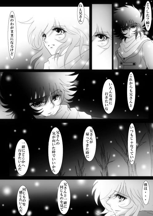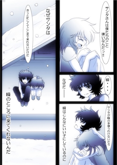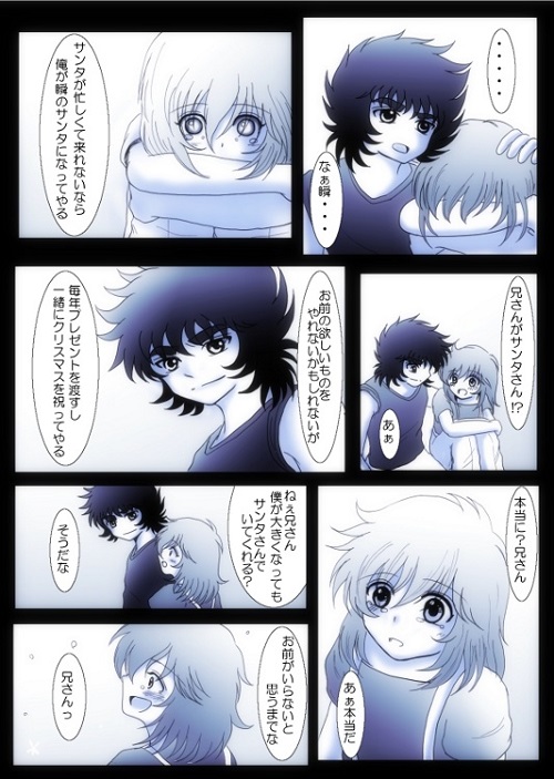 今年も一緒に。 ご来訪・拍手ありがとうございます。Topページに案内しておりますが、Gallery002にイラストアップしました^^明日はクリスマスイブ。一日早いクリスマス一輝瞬です(^^*)覗いて頂けたら幸いです♪ 先日、pixivにサイトのまとめをアップした際に久々に過去の自分の作品を見直たんですけど、12月に描いた一輝瞬見てたら今年も描きたくなっちゃいました^^*過去絵を上げてお恥ずかしいですが↓は過去の12月一輝瞬たち2012年クリスマス一輝瞬 2013年冬の一輝瞬 2014年冬の一輝瞬幼い時にサンタさんがこなくて悲しむ瞬ちゃんに、サンタさんになってあげた一輝兄さん。それからはずっとクリスマスは一緒にいてくれるんだろうなって改めて思ったわけで( *´艸`)瞬ちゃんのサンタさんはこれまでもこれからも、ずっとずーーーっと一輝兄さんなんですよね( *´艸`)♪だから今年もきっと一緒にクリスマスを過ごすだろうなっていう一枚です(*^^*) 今年のクリスマス、私は絶賛昼夜お仕事ですが、クリスマス一輝瞬妄想しながら脳内幸せいっぱいに過ごしたいと思います( *´艸`)w一日早いですがHappy Merry Christmas!皆さま素敵なクリスマスをお過ごしくださいませ( *´艸`)♪ [8回]PR