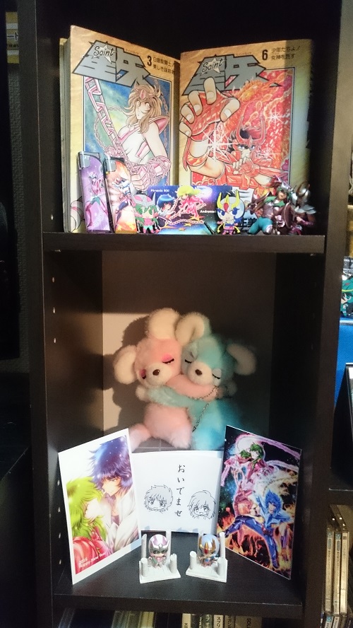 劇的ビフォーアフター&あんけーと☆ ご来訪・拍手ありがとうございます。怒涛の週6勤務を終えて、昨日はお休みだったのでリサイクルショップに足を運んだら、お手頃価格でディスプレイラックを発見したので買ってきました(^^)☆矢アイテムも増えたからディスプレイラックが欲しいなぁと空いた時間で探してたんですが、今回これはいいぞ!って思うラックと出会えたので即買いしました(≧///≦;)配送を頼むと有料で配達まで1週間かかるとの事。軽トラを無料で貸出してるので自分で持って帰ったら費用掛からずすぐに持って帰れるとあって、軽トラを運転して持ち帰りました。軽トラと併せて台車もお願いしてたのに、スタッフさんが台車をトラックに載せるのを忘れる事件発生。軽トラから卸して自室まで汗だくになりながら一人で運びましたよ・・・(*▽*;)運んだ後は部屋の大掃除と併せて部屋を模様替え&☆矢スペース増設しました。というわけで。 今までの星矢スペがこう変わりました☆写真が大きいので一旦たたみます。 こんな感じに増設~~~(≧▽≦)ノ まぁなんてことでしょう!←www今までこじんまりとしていた☆矢スペースが開放的になったではありませんか! センス皆無なりに、なんとか設置(≧ω≦)良い感じになりました♪狭い自室なだけあって、壁にどんと☆矢グッズが並ぶのは何だかテンションあがります♪大きなラックにしてよかった・・・♪ラックのあちこちがちょいちょい一輝瞬♪ ここのスペは完全一輝瞬スペだったり(//ω//)ふふふ♪ 先日の30周年展でゲットしたお宝も飾りました♪ちょこちょこと集めてきたアイテムたちもこうやってみると結構なかずになったなぁとしみじみ・・・♪とはいえ、まだまだ数も少ないしラックのスペースにも余力があるので、これからも地道にボチボチと集めていきたいなと思います(*^^*)そしてそして。先日のブログでお話しておりました一輝瞬誕漫画アンケートを作成しました。もしご協力いただけるアテナ様いらっしゃいましたらお付き合い頂けると光栄です。どうぞよろしくお願いします。一輝瞬誕アンケートアンケート期間は7/10までを予定としております。また併せて今描いている主夫兄漫画は一輝瞬誕が終わるまでおやすみします。一輝瞬誕が終わったらまた続きを描こうと思いますのでまたお付き合い頂けたら幸いです♪明日からまた1週間はじまりますが、皆様がんばっていきましょうね♪でわでわ皆さま、良い週末をお過ごしくださいませ♪ [12回]PR