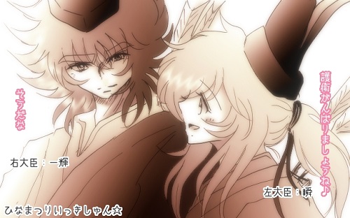 明かりをつけましょぼんぼりに~♪ ご来訪・拍手ありがとうございます。先日おはなししていたアテナ様から頂いた素敵一輝瞬を宝物庫に飾らせていただきました^///^♪もうね。私の師走が終わらない!って感じの1月で、小宇宙が燃え尽きようかしてた時、素敵な一輝瞬を頂いて、私の小宇宙は燃え尽きることなく頑張る事ができました≧ω≦♪この場を借りて改めて御礼☆碧繭様ホントにホントにありがとうございました!そしてそして。ブログのタイトルからなんとな~く察してもらえたかと思いますが・・・もうすぐひな祭りですね♪という事で♪雛祭り一輝瞬で妄想♪妄想♪ お雛祭りといえば、雛人形!雛人形一輝瞬・・・で考えた時に、お内裏様一輝兄さんとお雛様瞬くん・・・!となりそうですが、我が家の兄さんと瞬くんはそのポジションではなく・・・。お内裏様とお雛様は他のキャラにおまかせするとして。個人的には右大臣・左大臣な一輝瞬がいいなぁ・・・って思います^^*右大臣兄さんに左大臣瞬くん♪なんていうか。お内裏様とお雛様でいちゃこら・・・っていうようりはお揃いで色違いの衣装を召して、兄弟で雛祭りの宴を護衛します!っていうのが個人的にツボだったり・・・///一輝「フッ。これしきの宴の護衛、瞬と二人で十分だ。」 ←軽くドヤ顔( *´艸`)www瞬「そうだよ!ここは僕と兄さんに任せて!みんなは宴を楽しんで♪」 ←兄さんと二人で護衛できて超ご機嫌( *´艸`)♪そんな一輝瞬( *´艸`)フフフ♪そして二人で護衛にあたるんだけど、瞬くんは「兄さんと一緒に護衛できる」という事が嬉しいわけで・・・♪二人が信頼しているからこそ、「あっちは兄さんが守ってくれてるから大丈夫」ていう瞬くんに。「そっちは瞬がいるから大丈夫だろう。まぁ。何かあれば俺が駆けつけるがな」っていう兄さん・・・( *´艸`)ニイサーン♪だから、お内裏様とお雛様のように近くにいなくても、離れた距離で立っていても、お互いが信頼していて、離れていても以心伝心繋がってる・・・っていう。←ここ重要!そんなところで、私は右大臣・左大臣に兄さんと瞬くんがいいなって思います( *´艸`)♪ そして・・・宴が終わった後に、そっと二人で小さな宴をしてほしい・・・♪「今日はよくがんばったな。瞬」「兄さんがいてくれたからだよ♪」っていう、二人で甘酒を飲みながらの小さな宴・・・。そんな護衛後一輝瞬・・・余力があったら落書き漫画で投下します・・・( *´艸`)と。朧の雛祭り一輝瞬妄想でした・・・☆ [6回]PR