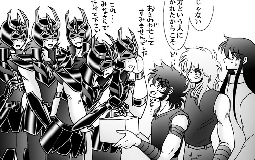 暗黒ふぇにっくすズ ご来訪・拍手ありがとうございます。Topページにてご案内しておりますが、Gallery005におはなしアップしました♪一輝瞬と暗黒フェニックスのお話1話目です(*^^*)お暇な時にでもお付き合い頂けましたら幸いです♪一旦たたみます。 夏から描き始めた暗黒フェニックスのお話・・・やっとこアップできました(^▽^;)一輝様に忠義を尽くそうとする暗黒フェニックス、一輝様が好きすぎるところとかホントね可愛い奴だなと思うんですよ( *´艸`)♪ アテナの御慈悲に感動する暗黒フェニックスとか・・・彼らは本当は根は良い奴なんですよ( *´艸`)♡(あのギルティも優しき泣き虫パパになるから、私の脳内のキャラは悪役もみんないい奴になってしまうんですがw)まぁ・・・私が描くどことなくおねぇな雰囲気がでちゃったんですけど・・・wwwそしてちょっと女子力高めwww(でもおねぇ設定ではないですからw)「可愛い奴らじゃないか」と笑って許してくださいませ(^▽^;) あの格好でお洒落な有名ケーキ店で5人でああじゃないこうじゃないって言いながらケーキ選んでるところとか見てみたいですwwwそして意外に愛想が良い暗黒フェニックスたちに青銅ちゃんもたじたじですねwww「なんだあいつら結構いいやつじゃん♪」とか星矢は言ってそうwこんな感じでお話がはじまりましたが、これからまだまだ続きます(*^^*)♪ 次は一輝兄さんがデスクィーン島にやってくるところです♪ 瞬ちゃんはもうちょっと不在ですが、続きのお話もまたお付き合い頂けたら幸いです( *´艸`)♪どぞどぞよろしくお願いしまいっきしゅん♪最後に頂きましたメッセージのお返事をこちらのコメント欄にてお返事させていただきました( *´艸`)♡コメントありがとうございました( *´艸`)♡ [7回]PR