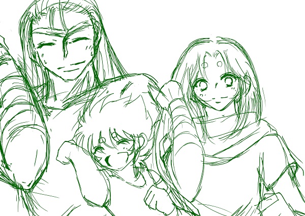 ただいま迷走中... 描きたいものがたくさんあっていろいろとラフを描いたり下書き描いたりしてたら気づけばラフで眠ってるのがわさわさとあって・・・ひとつずつ仕上げていきたいなぁとか思うものの先月終わらせる予定だったアリエス漫画も終わらせられなかったから今月には終わらせたいし・・・それと今月は他にふたつ描きたいお話もあるからそれも描きたいし・・・ってなって・・・・・・さて。これをどこから手を付けよう・・・・・と、ただいま絶賛迷走中・・・><。。。むー・・・-_-;ちなみに↓は無印+ΩキャラでAKBの恋するフォーチュンクッキーネタでイラスト描きたいなぁとラフまで描いてて、まったく手をつけられずこのまま眠ってしまいそうなので、とりあえず1枚だけ下書き^^♪ 貴鬼ちゃんめっちゃノリノリ★シャカムウ好きなんですけど、貴鬼ちゃんが入るとアルデムウが好きなんですよね^^♪あのサビのところの兄さんと瞬くんもラフはあるんですけど、瞬ちゃんはかわいいなぁって素直に思うんですけど、兄さんまでかわいい感じになってしまって、かわいい兄さんにとまどってラフのままだったり・・・^^;話それちゃいましたが、どこまでできるかわからないけど、今月もできる範囲でちょこちょこと描いていこうと思います・・・とりあえず前の日記であげてたちびいっきしゅんの漫画をアリエス漫画同様2~3Pずつぐらいに小分けでアップしていこうかなと思いますこんな感じの一輝瞬♪ ちょこちょこ進む感じでも読んでやるよっってお付き合いいただける方はお暇なときにでものぞいてもらえればと思います^^ ↑は先日ツイッタやピクシブでお世話になっている碧繭様にお贈りさせて頂いたお誕生日絵のテクスチャなしVer☆テクスチャなしなのもまた雰囲気が違ってこちらもお気に入りなのでここにこっそりアップ^^♪気づけば3月入ってますね☆ただいまこんなカンジで迷走中ですが、今月もどうぞよろしくお願いします>▽<; [0回]