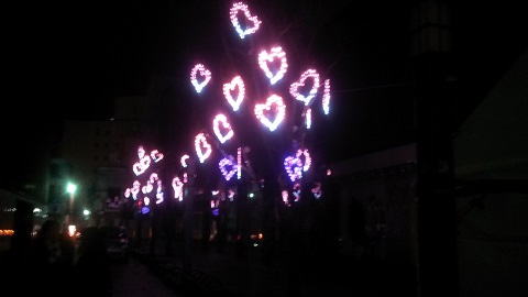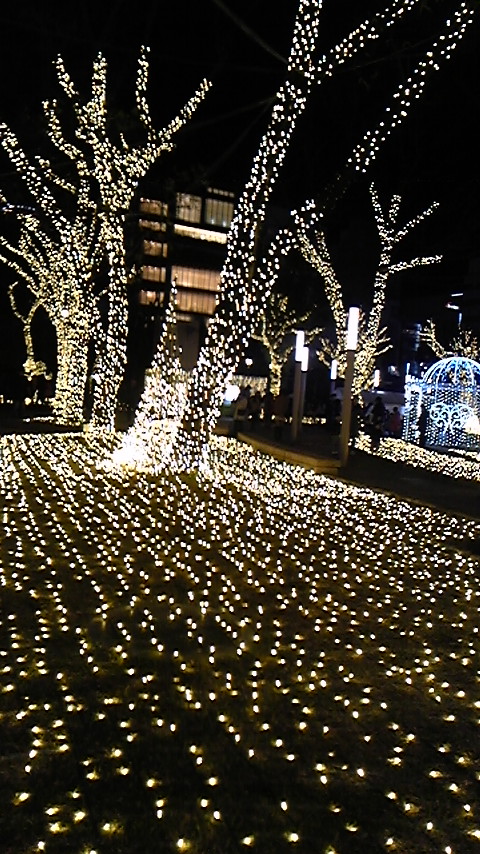 メリクリでした☆ 終わっちゃいましたが、メリークリスマスでした≧▽≦♪皆様楽しいクリスマスおすごしでしたでしょうか??朧は、お腹をこわして具なしのおうどん食べてのクリスマスイブ:▽;昨日はママさんのいつもの晩御飯でした^▽^;まぁ・・・。クリスマス関係なしのいつもの日常でした^^;そして昨日は久しぶりにお家でゆっくりできたので、お絵かきわしわし描くぞーー!とか思ってたのに、コタツの暖かさにまんまとやられて朝まで爆睡でした・・・なにやってるのさ私・・・orzクリスマスは終わってしまったのですが、こないだの連休にちょっといろいろとイルミネーション視れたので写真アップ♪まずは、一輝瞬ランチをした日に、お会いした絵師様にハートのイルミネーションがあると聞いて夜見に行ってきました^▽^ ハートのイルミめずらしくてとっても可愛かったです♪北九州のリバーウォークの近くだったので、少し見に行ってきました♪ 紫川にかかる橋にあるトンネルのイルミネーション☆ 橋の中央にくまさん☆片目がちょっとかわいそうな事になってたんだけれども・・・^^; 小倉城の方まで探索したかったけど、体力0であきらめました^^;そして、次の日福岡に帰ってきたときに天神にもいろいろと華やかだったので、バス停まで探索☆まずは天神バスセンター裏の警固公園。 去年と変わり映えなかったけど、今年もきれいだった^^♪ビルに囲まれた小さな公園の中がイルミ一色☆地面もキラキラ☆ 黄色のライトの中に映える青色のお城のオブジェ♪ そしてツリー☆ 警固公園からおばちゃんの町新天町の方へ歩くと岩田屋に大きなツリーがあって、その向かいにカワイイ風船のタワーを発見♪ 近くで見るとこんな感じ♪ そして、新天町の中央も可愛くなってました。 新天町を抜けると最後に地元、福岡銀行の入り口に大きなイルミで作られたツリー☆ 周りはカップルや家族連れ、友達同士で見に来ている人が多かったかな。でも少し歩いただけでいろいろなイルミがみれたので、おひとりさまの朧もとっても楽しい気分になりました^▽^♪というわけで。連休イルミレポでした^▽^♪気づけば今年もあとわずか。今月はあんまりお絵かきができていないので、年末のお休みにでもがっつりわしわし描きおさめたいなと思います^ω^ [0回]