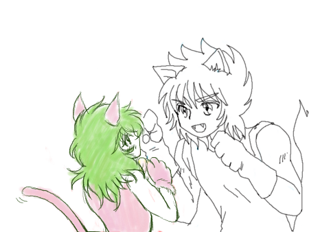 二人でケモノ耳一輝瞬を描いてみました(^^*)♪